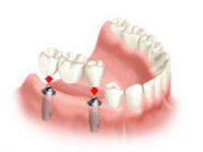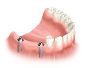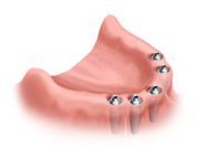 Auch ein komplett zahnloser Kiefer kann mit Zahnersatz auf 3-4 Implantaten versorgt werden: